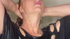 Now it is Cinnamon's turn to wash up all that clay/mud off her jeans, clothes, hair and face! Take a peek while she hits the hot shower!