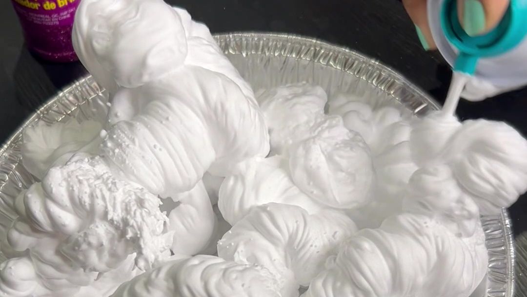 Masala's pie prep before the sitting! Equipped with a can of shaving cream and some purple glitter, Masala makes a nice mountain for Cinnamon!